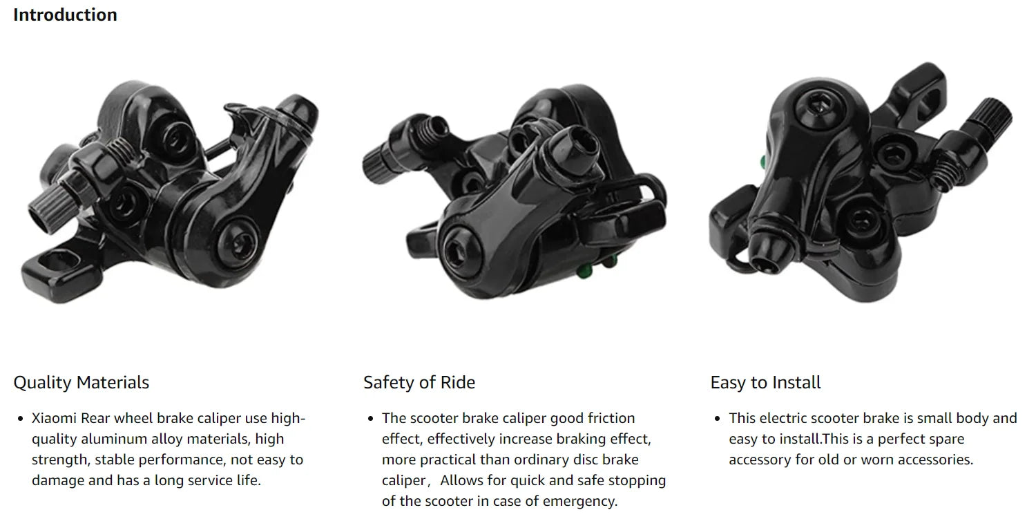 - Xiaomi Rear wheel brake caliper use high-quality aluminum alloy materials, high strength, stable performance, not easy to damage and has a long service life.
