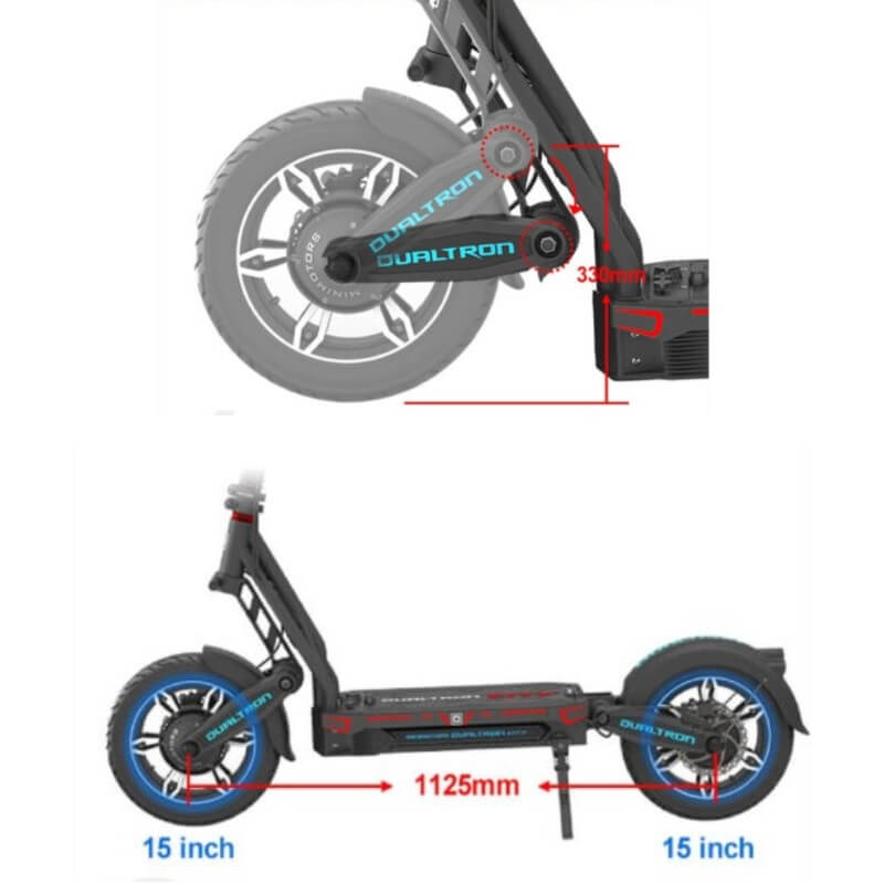 With increased ground clearance, the Dualtron City enhances maneuverability and control, allowing for safer navigation in unpredictable urban environments. The longer wheelbase reduces wobbles and oversteering, ensuring greater balance and confidence at higher speeds. Whether commuting through city streets or tackling rough roads, the Dualtron City offers unparalleled stability, safety, and comfort for a superior riding experience.