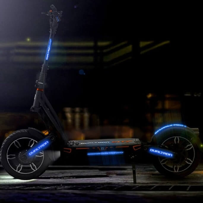 The Dualtron City is equipped with a modern LED lighting system that enhances both visibility and safety in fast-paced urban environments. While the sleek design adds a stylish touch, the lighting system is primarily engineered to increase security and predictability for both riders and other road users.