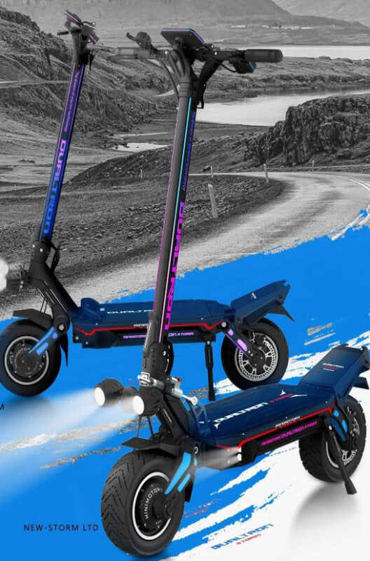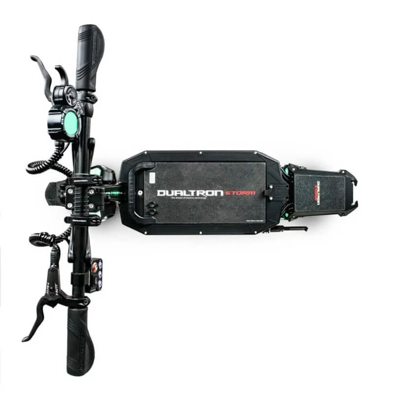 Dualtron New Storm Limited: The Pinnacle of Power and Innovation The Dualtron New Storm Limited redefines high-performance electric scooters with cutting-edge technology, unmatched power, and superior durability. Designed with rider feedback in mind, this powerhouse offers smarter features, enhanced reliability, and exceptional performance for both urban and off-road adventures. Advanced Technology & Smart Features The EY4 full-color LCD display brings seamless Bluetooth connectivity, enabling riders to customize ride settings, monitor performance, and adjust cruise control through a dedicated app. The wider handlebars (+100mm) enhance control and comfort, while dual 30W headlights provide outstanding visibility in low-light conditions. Additionally, an advanced cooling system improves controller efficiency, extending the scooter’s lifespan. With an IPX5 water resistance rating, the New Storm Limited is built to handle all weather conditions with ease. Unrivaled Performance Powering the New Storm Limited are dual 11500W motors, allowing for speeds of up to 100 km/h (where legally permitted). The 84V 45Ah LG battery delivers an astounding 200 km range per charge, making it the ideal choice for long-distance commutes and thrilling rides. With fast-charging capabilities, it fully recharges in just 9 hours, minimizing downtime and maximizing ride time. Enhanced Comfort & Durability The adjustable front and rear suspension system offers five cartridge options, ensuring a customizable ride suited for various terrains. A sturdy build with wider handlebars improves stability, while the reinforced folding system makes transport and storage more convenient. Weighing 50.5 kg, this scooter supports riders up to 150 kg, making it a robust choice for all types of riders. Uncompromising Safety Equipped with NUTT hydraulic disc brakes (160mm) and magnetic assistance, the New Storm Limited delivers exceptional stopping power and responsive braking, ensuring rider confidence at all times. The comprehensive lighting system includes dual 30W headlights, brake lights, turn signals, and a horn, maximizing visibility and safety on the road. Seamless Connectivity The Bluetooth-enabled EY4 display syncs effortlessly with the Dualtron app (iOS/Android), allowing real-time monitoring of speed, battery life, ride settings, and LED lighting customization. The Ultimate Mountain Conqueror Building on the success of the original Dualtron Storm, the Storm Limited pushes the boundaries even further. With an 84V 45Ah LG battery featuring cutting-edge 21700 high-performance cells, it delivers exceptional torque, power, and an impressive 180 km range. Featuring fully hydraulic brakes, large 12-inch RSC tires, a steering damper, dedicated front lights, and a fast charger, the Storm Limited ensures an unparalleled riding experience. With superior water resistance and rugged build quality, it sets a new benchmark in high-performance electric scooters. Built to Withstand Any Condition The Thunder 3 comes equipped with an upgraded folding system, enhancing stability and durability in both riding and folded positions. Boasting an IPX5 water resistance rating for the body and an IPX7 rating for the LCD display, it guarantees reliable performance in rain and wet conditions. To further enhance nighttime safety, the Thunder 3 now features two dedicated front lights, ensuring maximum visibility in low-light environments. Upgraded EY4 IPX7 LCD Display The Dualtron Storm Limited now includes an improved steering column, enhancing the scooter’s stability and durability. The latest EY4 LCD display provides seamless Bluetooth connectivity and is IPX7 water-resistant, ensuring flawless operation even in wet conditions. With a perfect blend of power, innovation, and rider-centric design, the Dualtron New Storm Limited is the ultimate electric scooter for those who demand unmatched performance and reliability. Whether conquering urban streets or rugged off-road trails, this scooter is built to dominate.