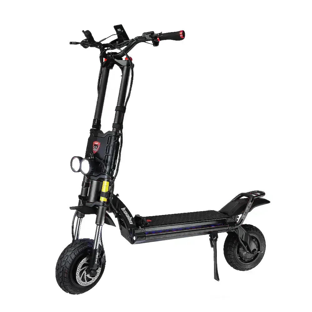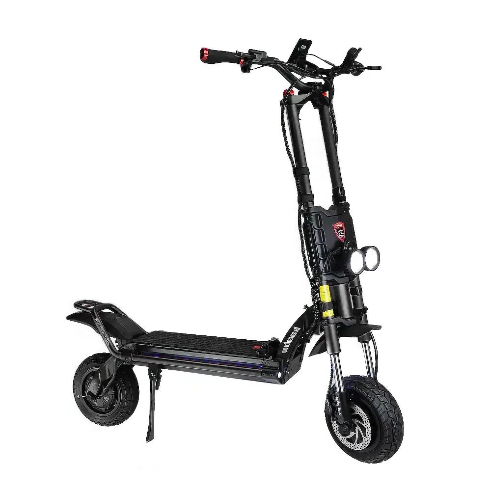 The Kaabo Wolf King GTR is the newest and most powerful addition to the Wolf pack, built for experienced riders who demand the best. Designed with an IPX5 water resistance rating, this high-performance electric scooter is ready to conquer any road or weather condition. With an incredible top speed of 65 mph, the King GTR dominates the streets, effortlessly outpacing other scooters and even cars. Engineered for adrenaline-seekers, this beast delivers an unmatched riding experience with top-tier speed, power, and durability.