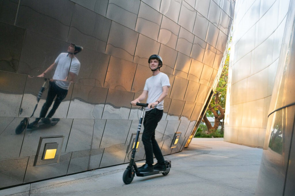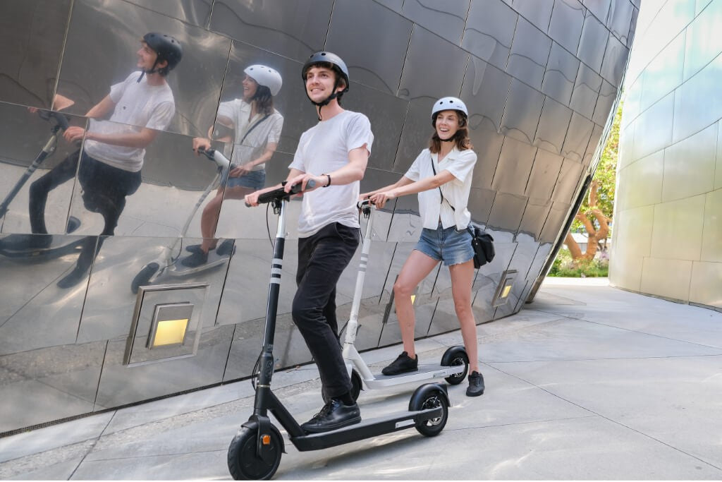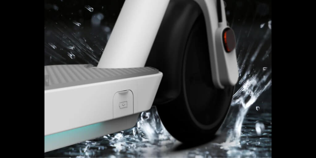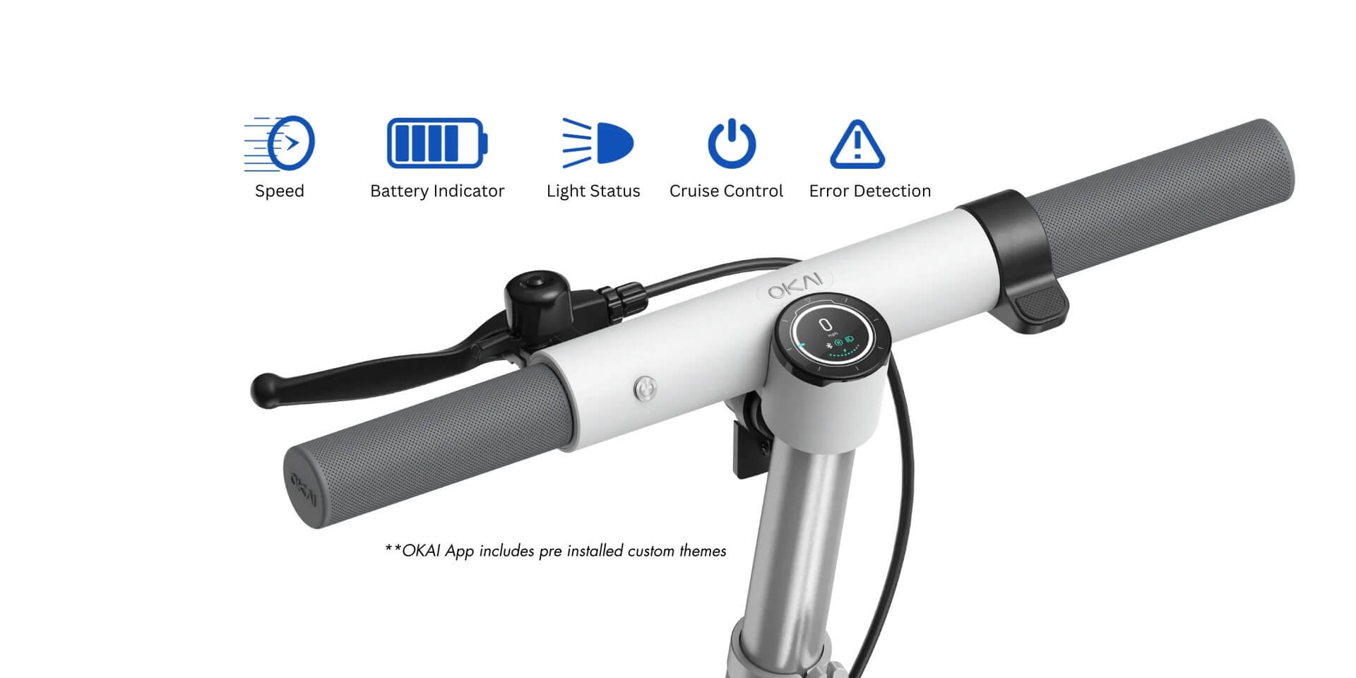 IPX5 Protection • The OKAI Neon’s IPX5 water resistance rating keeps you covered during unexpected rain showers, ensuring safety until conditions improve for riding.