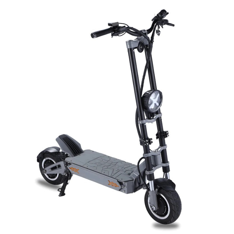 The VSETT 11+ is a powerhouse! It’s fast, rugged, and packed with unique features and specs that will leave scooter enthusiasts excited. Equipped with dual 1500W motors, it delivers incredible power and acceleration. In sports mode, the tyres squeal as soon as you hit the throttle, making it a perfect choice for adrenaline seekers. The VSETT 11+ is designed with dual suspension systems, providing an exceptionally smooth ride, even at high speeds. Its aggressive design includes a bright headlight, a unique tire hugger to prevent splashes, and a bold color scheme that ensures it stands out.At the top of its game, the VSETT 11+ is an all-terrain, head-turning beast. Get yours now!